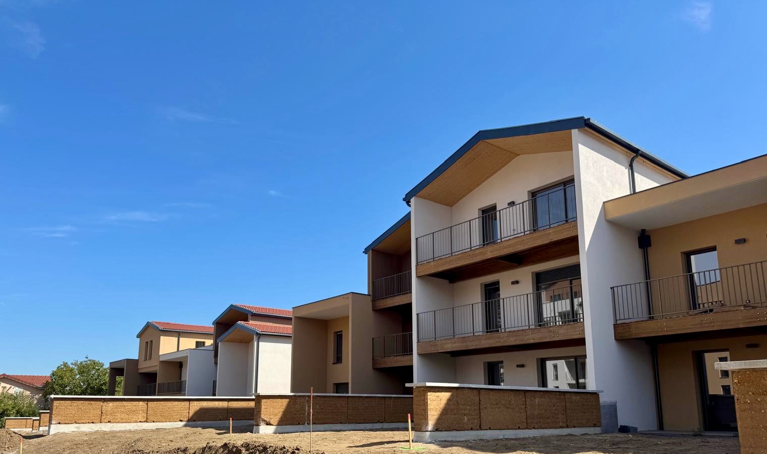 Ensemble immobilier en région lyonnaise avec des murs extérieurs en pisé